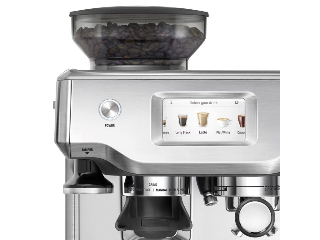 Espresso SAGE SES880BSS Barista Touch. S jeho pomocí bez problému připravíte vaše oblíbené espresso, cappuccino nebo třeba dokonale nadýchané latté. Kávovar má příkon 1 680 W a lze v něm připravovat zrnkovou i mletou kávu. Jeho součástí je praktická, 2l nádržka na vodu. Zásobník na kávu pak pojme až 230 g.